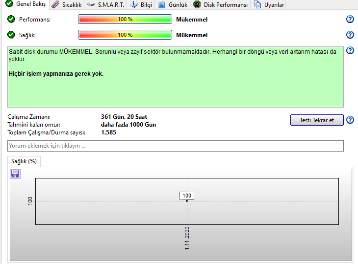 Durum iyi gözüküyor ama SMART verilerini yanlış okuyor gibime geldi. 110 derece sıcaklık mümkün değil.