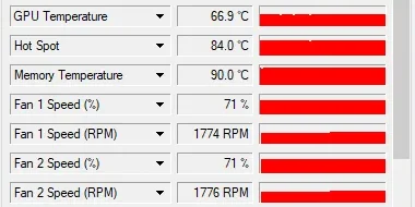 Gördüğünüz gibi 1hafta gibi kısa bir sürede gpu tempte 5c fark, fan yüzdelerinde %10 fark hotspot ve vramde 2-3c farklar oluştu.