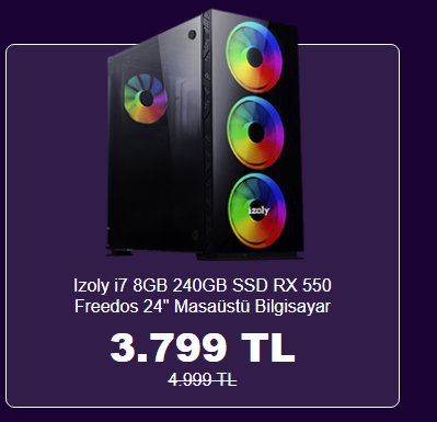 Izoly i7 8GB 240GB SSD RX 550 Freedos 24" Masaüstü Bilgisayar