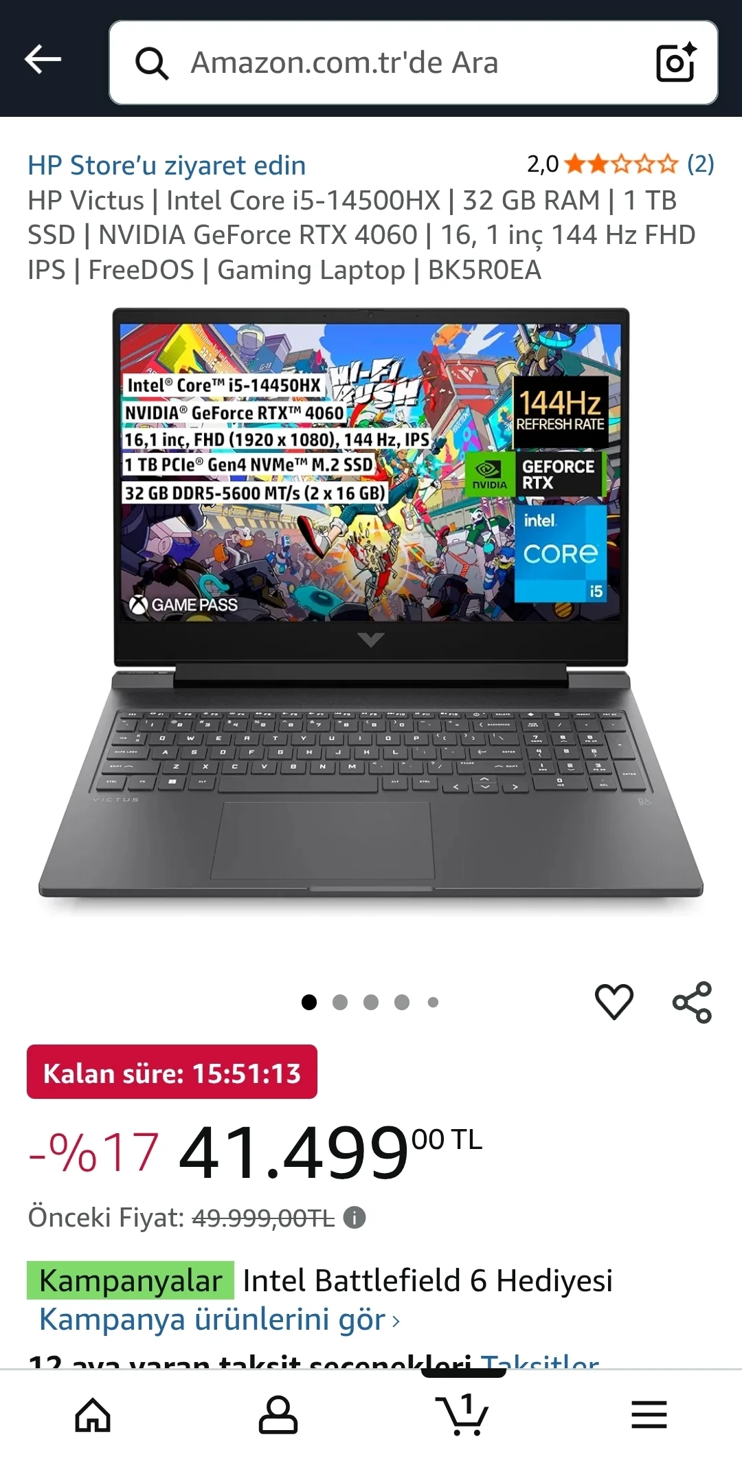 HP Victus | Intel Core i5-14500HX | 32 GB RAM | 1 TB SSD | NVIDIA GeForce RTX 4060 | 16, 1 inç 144 Hz FHD IPS | FreeDOS | Gaming Laptop | BK5R0EA : Amazon.com.tr: Bilgisayar