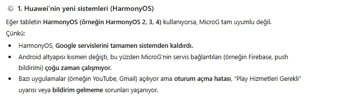 anlıyorum bende cihazı bu konuda yermeyi doğru bulmuyorum tercih meselesi isteyen alır. sorun yaşansa da ben bir çözüm bulabilirim ama x birisi bulamayabilir haklısınız. microg açık kaynak güvenilir bir uygulama bu arada bilgilendirme olsun istedim.hocam ben demiyorum matepad 11.5 vs huawei tabletler genelinde sikayetvara girersen diğer tabletlerde olmayan google play store uygulamalarıyla ilgili karşılaşılan ciddi sorunlar için dolu şikayet var. Gboxmış mıcrog miş bilmiyorum ben basıp youtubea girmek istiyorum. Mıcrog veya x bi ekstra uygulamaya güvenip onun üzerinden youtube hesabıma instama gmailime ona buna girmek istemiyorum. Böyle sikayetler varken ben de diyorum ki bence diyorum ama bak almam. Biraz mantıklı düşününce de böyle işlemci klavyeyle birlikte neden bu fiyata satılıyor o fiyata olan honorda neden çok daha düsük islemci var insan anlıyor. Sorunlarla karşılaşma potansiyelimiz olan cihazlar. Yoksa ben de almak isterim 10 11kya klavyeli mis gibi islemcide iyi aması var işte..