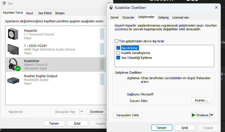 2024 Temmuz ayında Hyperx Cloud 3 kablolu model kulaklık aldım. Kulaklıkla ilgili piyasada çok fazla olumlu yorum vardı fakat beni şimdiye kadar bir tık hayal kırıklığına uğrattı. Ben yapamadığım ayarlar olduğunu düşünüyorum. Konuyla ilgili, bu kulaklıkla yapılabilecek en iyi ayarlar veya işte "Ben şunu yaptım hocam ses deneyimim üst seviyeye çıktı" diyebileceğiniz ayarlar var mıdır? Bilgisi olan arkadaşlar birkaç tüyo verirse çok sevinirim şimdiden teşekkürler.