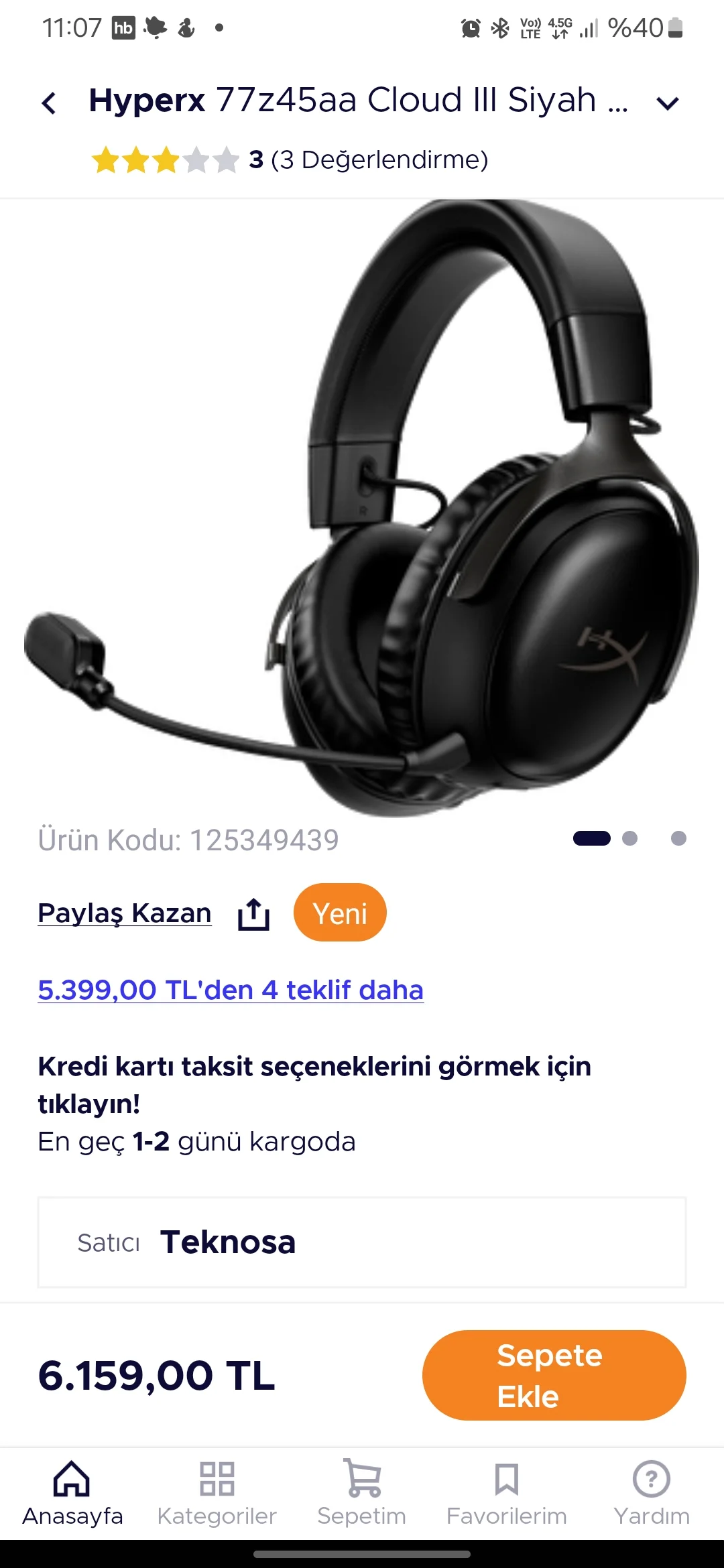 ❌İndirim Bitti! Hyperx Cloud III wireless 3300 TL