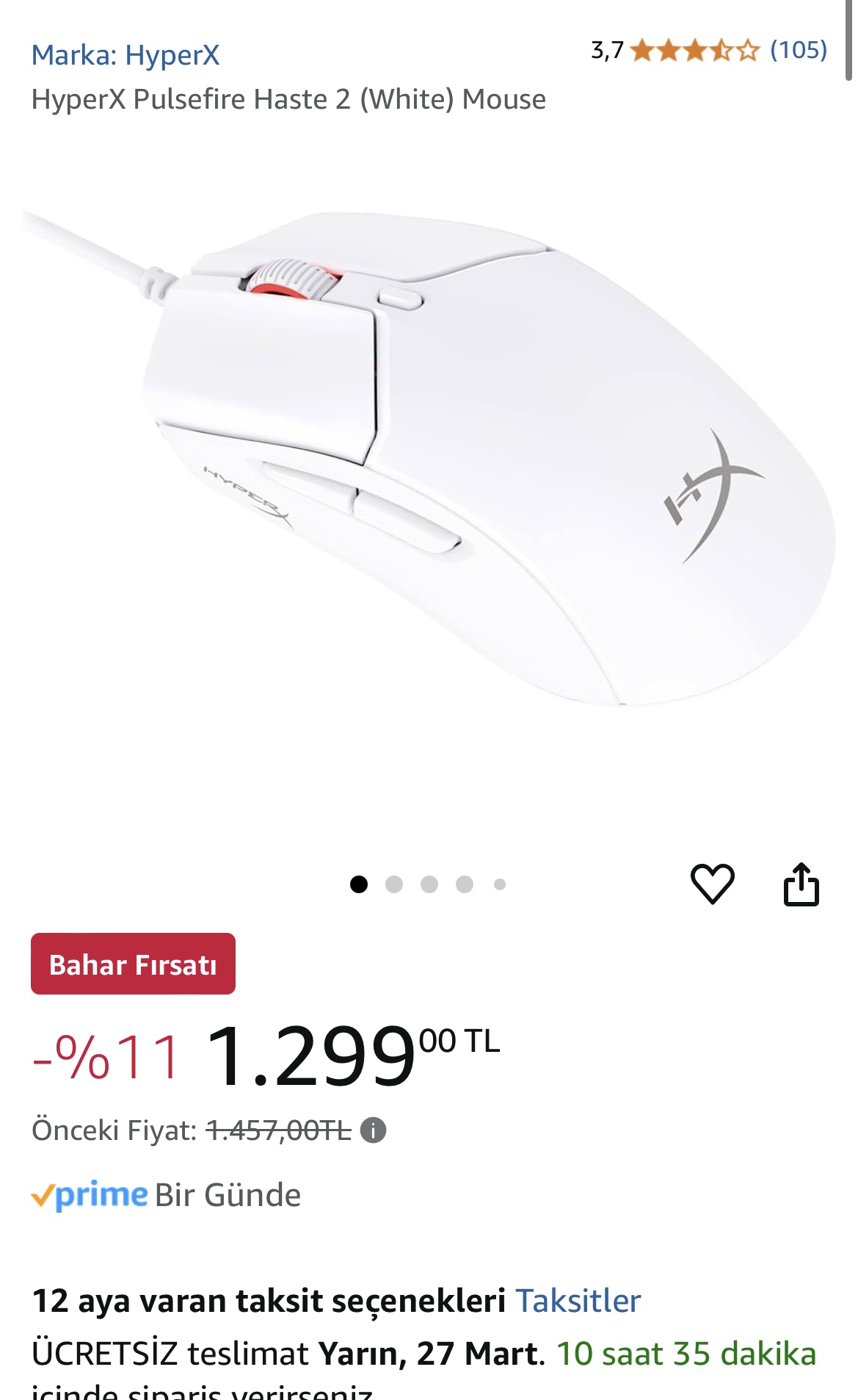 Amazondan 1300 liraya Hyperx Pulsefire Haste 2 aldım açıkcası amazon prime üyeliğim var ve amazon iade konusunda çok iyi bir firma bu yüzden bu fareyi denemek istedim.