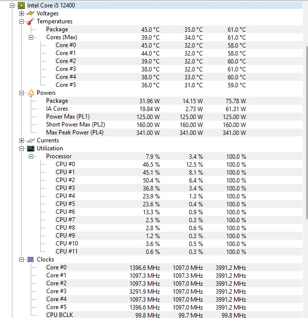 I5 12400 işlemci 4 ghz üstüne çıkmıyor