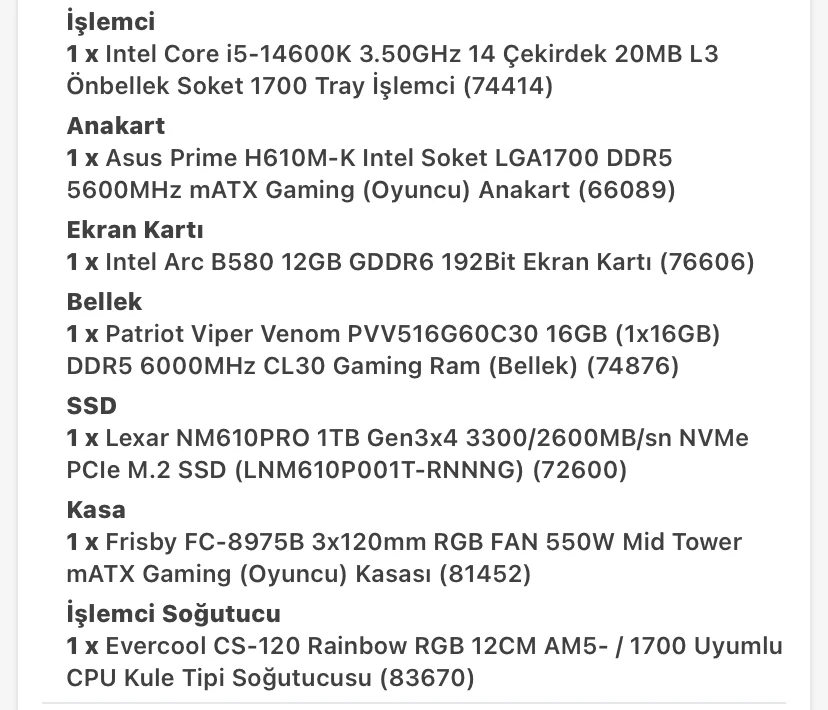 Sistem özelliklerim fotoğraftaki gibidir (ekim 2025 başında alındı 4 ay civarı oldu alalı) windows 11 kullanıyorum ancak asıl konu işlemci i5 14600k internetteki araştırmalarımda işlemci tabanlı oyunlarda tam verim alamıyorum örneğin cs 2 de bu işlemciyi kullananlar 1080p de orta ayarlarda 350-400 fps sabit alıyor ben 1280x960 ve düşük ayarlar 150-250 arası alıyorum ama ekran kartı tabanlı AAA düzeyde herhangi bi oyunda en yüksek ayarlarda sorun yaşamadan oynayabiliyorum zannediyorumki anakarttan dolayı ancak yanılıyor olabilirim lütfen aydınlatın ek olarak sistemden memnunum gayet sadece hava akışı güzel değil önde 2 fan var sadece yakında halledicem ve ekran kartına framegen teknolojisi geleceği hatta geldiği konuşuluyor ancak ancak hiçbir bilgim yok onunla ilgilide konu açmayı düşünüyorum eğer değişmem gereken parça varsa elimdekini satıp belirttiğim bütçe ile öneriyi alabilirim