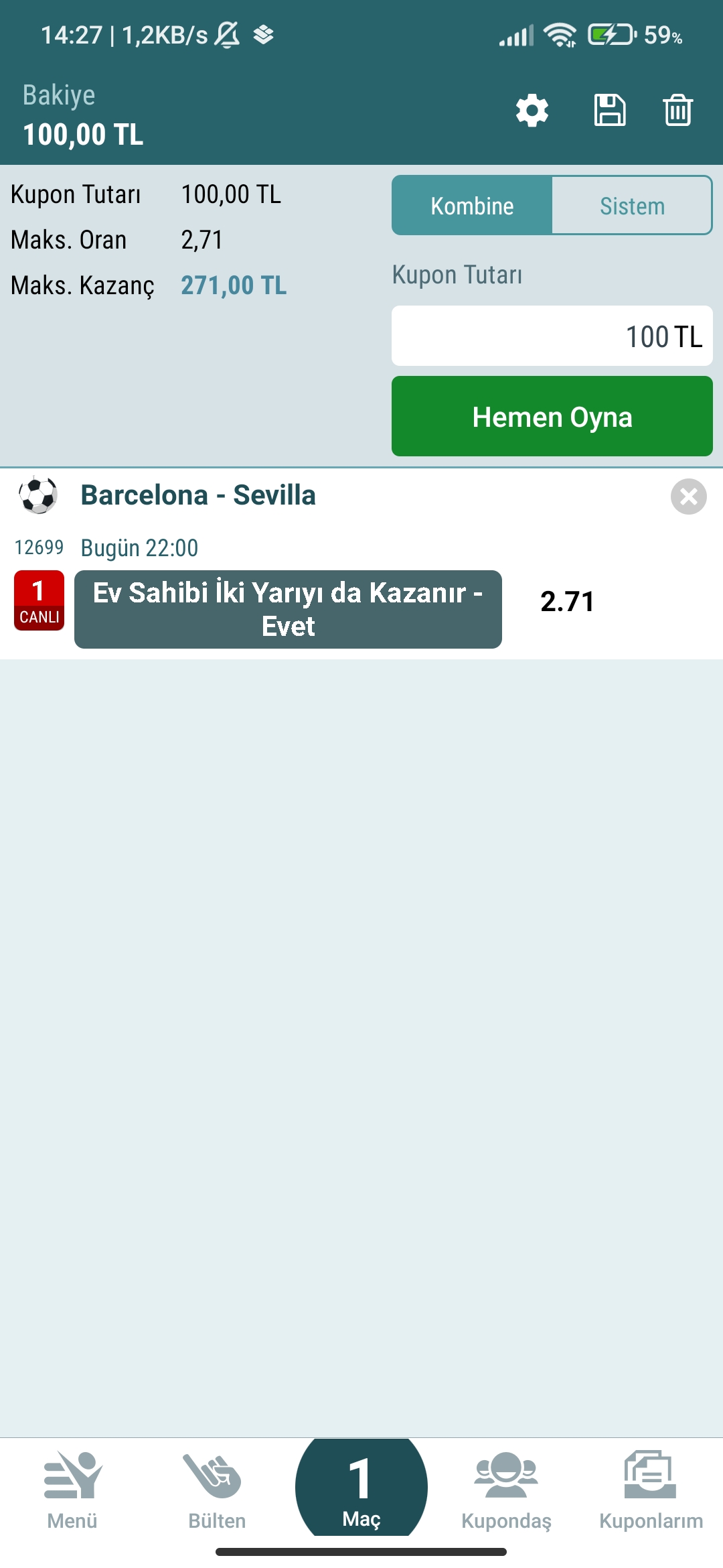 Antalya maçına da aynı şekilde bassam 3.07 oran oluyor basayım mıTutabilirde tutmayabilirde ama kesinlikle karşılıklı gol ve maç sonu 2.5 üst olur