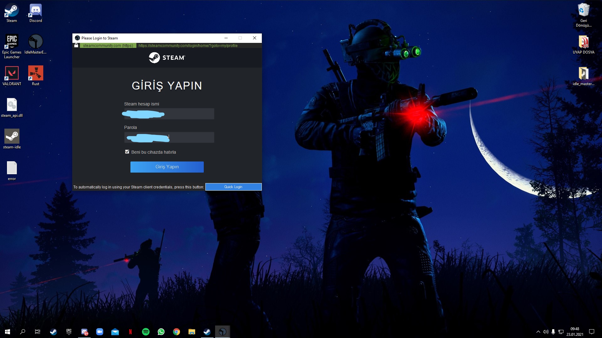 Arkadaşlar şimdi Idle Master Kurulumunu Tamamladık ama önemli bir şey daha var arkadaşlarımızın rahatsız olmaması için Steam'i açıyoruz
