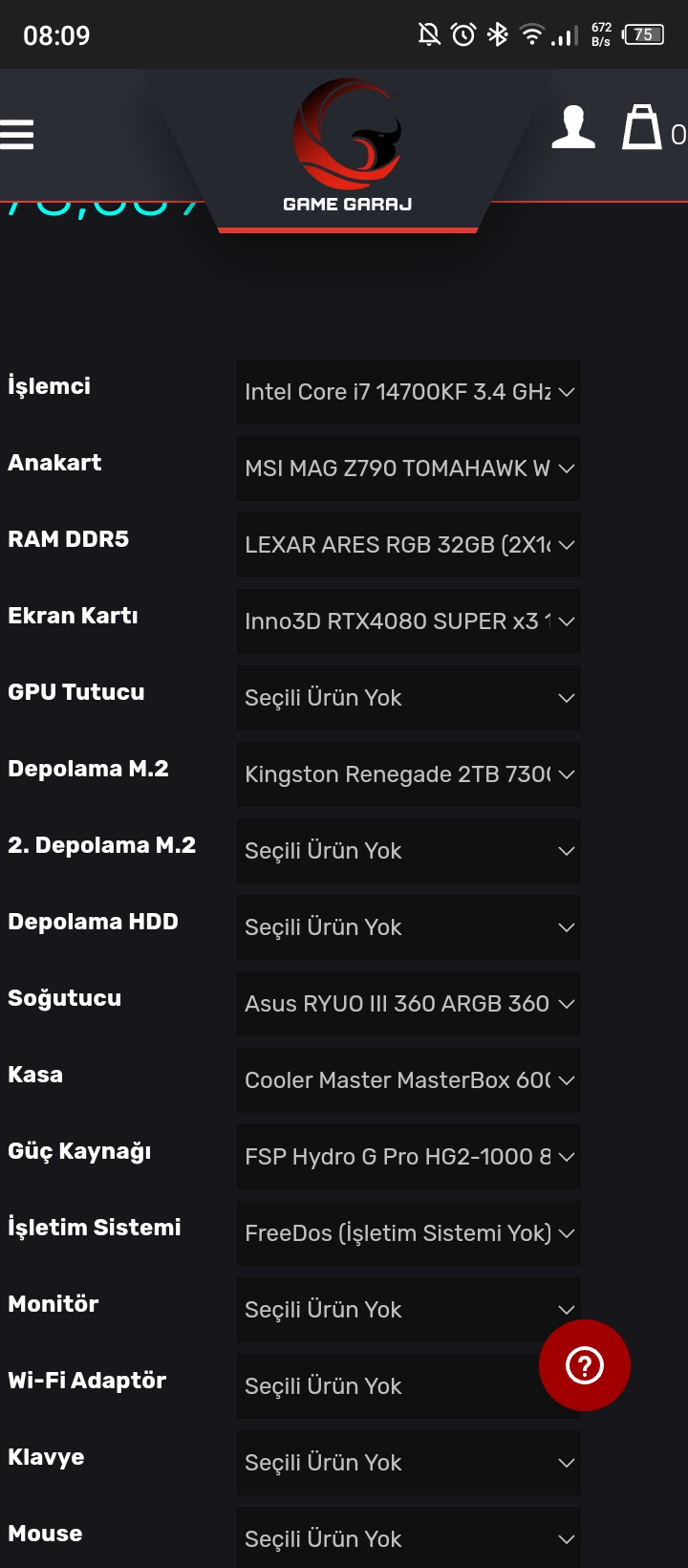 Sistem linki bu.Hatta 4 bin lira farkla 14900k'ya geçebiliyormuşsunuz.