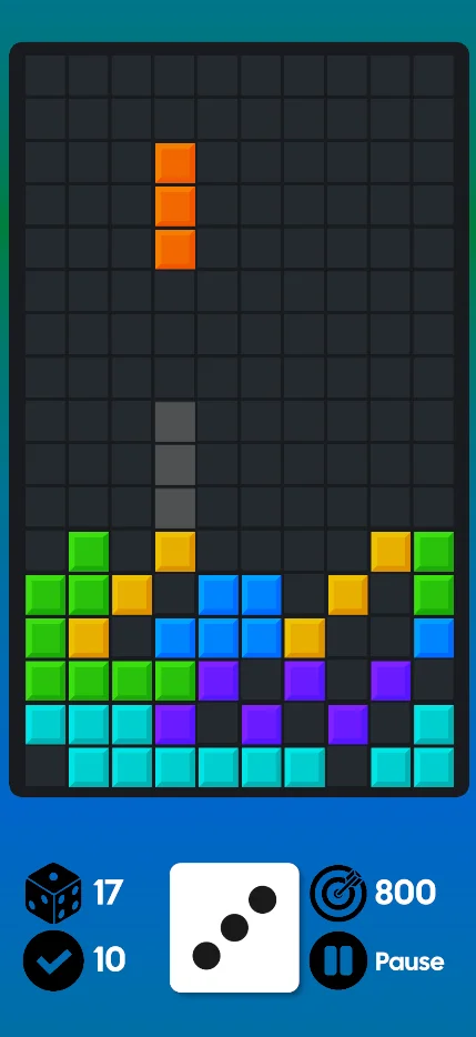 Oyundan bahsedecek olursak Tetris ve zar mekaniklerini birleştiren bir strateji oyunu denilebilir. Elimizde belli bir zar atma hakkı var ve ulaşmamız gereken bir hedef puan var. Amacımız elimizdeki zar haklarını doğru kullanarak düşen blokları doğru yerlere yerleştirmek ve satırları temizlemek böylece hedef puana ulaşarak seviyeyi tamamlıyoruz ve sonraki seviyeye geçiyoruz. Örnek birkaç fotoğraf ekledim.