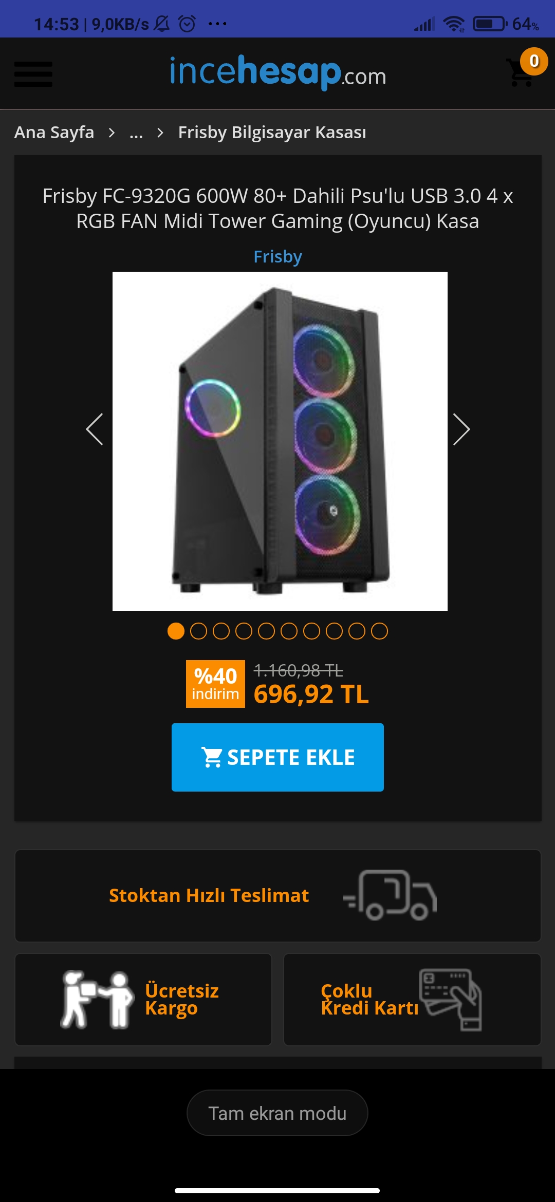 Kargo konusunda sorun olmaz ama aldığınız üründeki psu ya sistem emanet etmeyin.