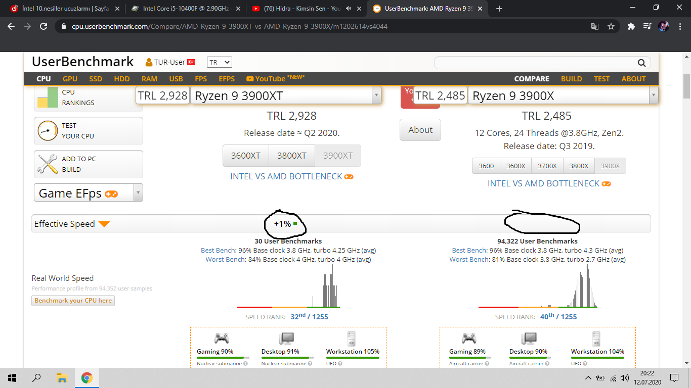 Lütfen 3600XT' me laf etmem o abileri gibi %1 değil %3 fark attı 3600x' e :D