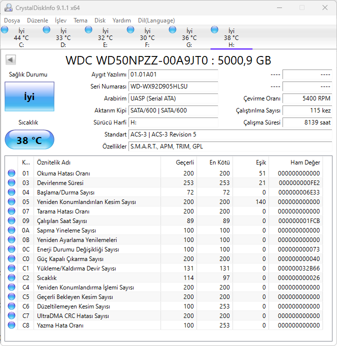 HDD format sonrasında da, içinde az veya çok veri varken de durum aynı. Okuma hızında sorun yok. Farklı USB kablolarla da denedim, değişmedi.