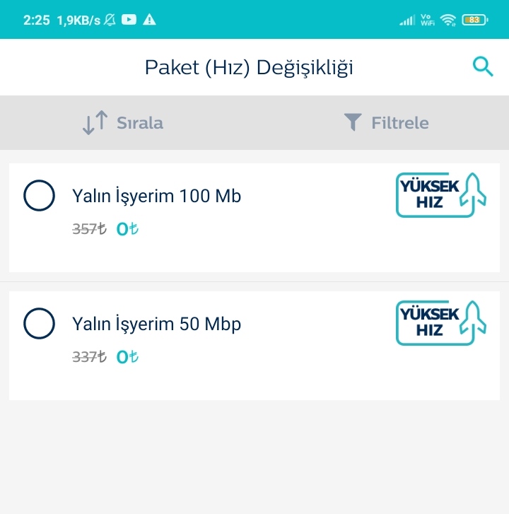 arkadaşlar paketimde hız değişikliği yaparsam fiyat artar mı resimde 0 TL gösteriyor hız artışlarında uygularsam acaba fiyat artar mı