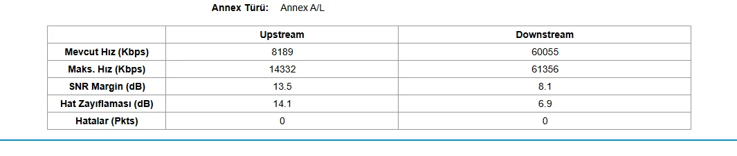 Değerlere göre down snr sınırda; üstü sıkıntı olur.