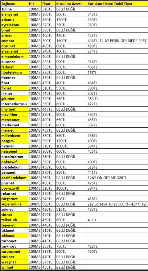 Hocam TT hariç neredeyse hepsi fiber altyapı var max 100mbs olarak gösteriyor ama dairemin yanında fiber kutusu varkanka üsttekilerden seç beğen al işte ben netgsm kullanıyorum gayet memnunum müşteri hizmetleride gayet iyi