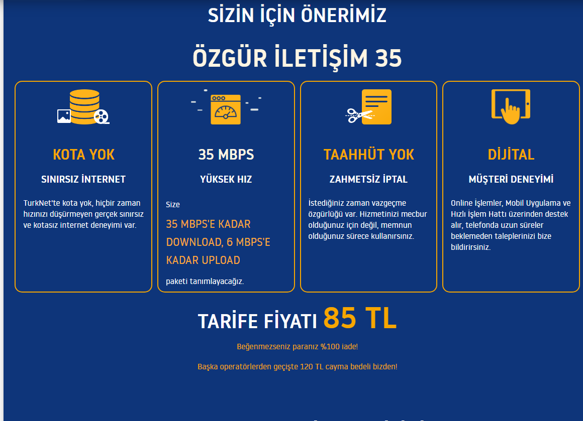 Millenicom ile aynı değerleri ve aynı fiyatı vaat ediyor. TürkNet'in müşteri hizmetleri desteğinin zayıf olduğunu düşünüyorum. Bu yüzden ben Millenicom kullanmanızı öneririm.