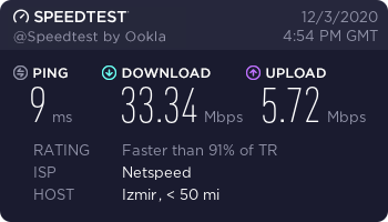 2 gündür internetim çok kötü. Daha demin 2 dakika bekledim Forumu açabilmek için. O gibi kesilmeler dışında oyun oynamak için biraz kötü durumda. Ortalama 5 upload 25download alıyodum 5mbps download 0.5 upload alıyorum. Herhangi bir oyunda sıradan oynarken bir anda ping fırlıyor 900 lere. Arkadaşıma sordum bende de öyle falan filan dedi ama maşallah oynuyor oyunlarını. Genel olarak problem mi var yoksa ben de mi sıkıntı var?