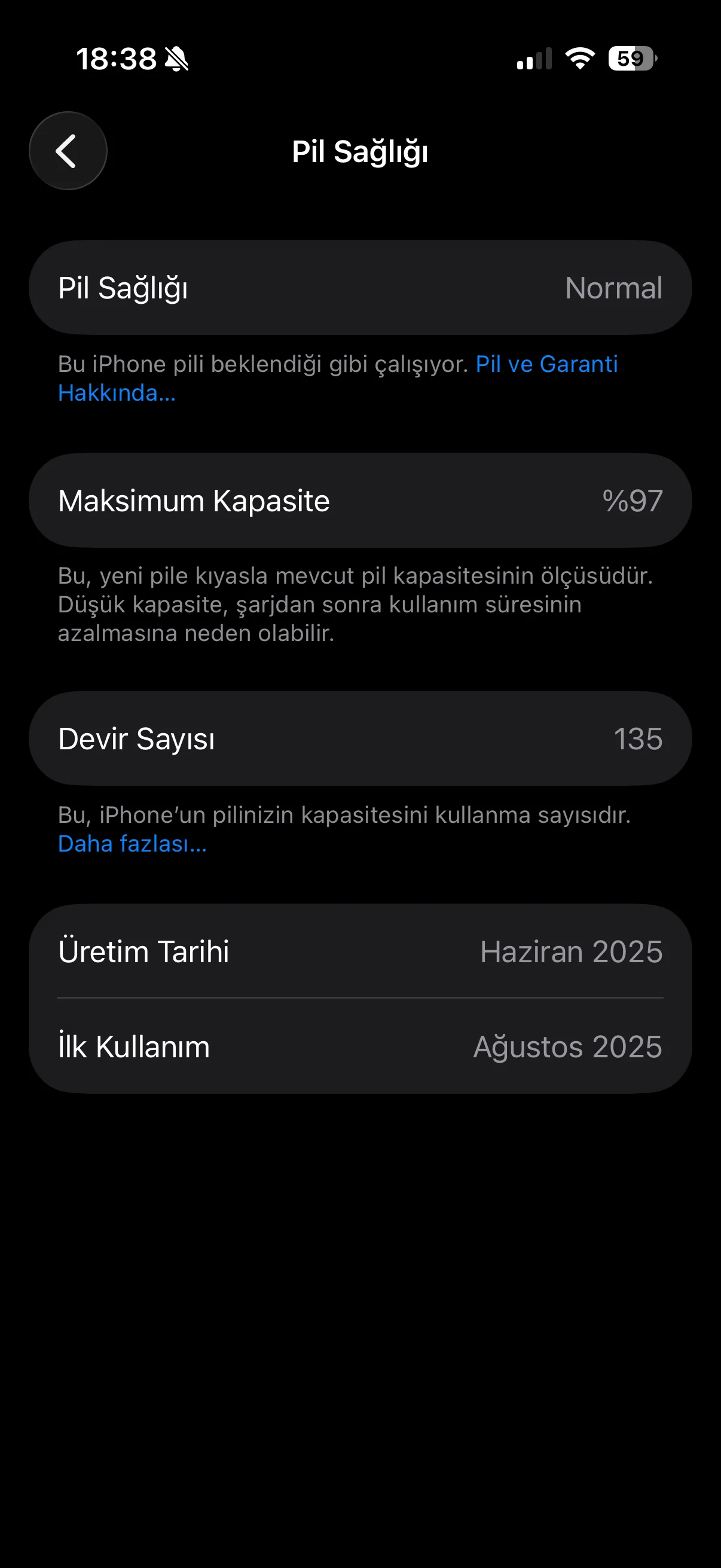 Öncelikle herkese merhaba. Eylül 1 de sıfır İphone 16 pro aldım. Telefonda herhangi bir sıkıntı olmadı şimdiye kadar. Şarjda asla kullanmıyorum genelde 20-90% arası kullanırım. Azıcık oyunda oynuyorum. Pil sağlığım ilk düştüğünde 69 devirdi, 75 te 98% düştü şuan 135 devirdeyim ve 97. Anlamıyorum akrabam düzenli oyun ve şarjda kullanıyor 460 devirde hala 95% pil sağlığı var. Diğer arkadaşlarımdada en çabuk 200-250 devirlerde indi. ChatGpt kalibernin doğru olduğunu endişelenecek bir durum olmadığını ve onlarda birden bire düşeceğini söylüyor. Yardımcı olursanız çok sevinirim. Şimdiden Teşekkürler