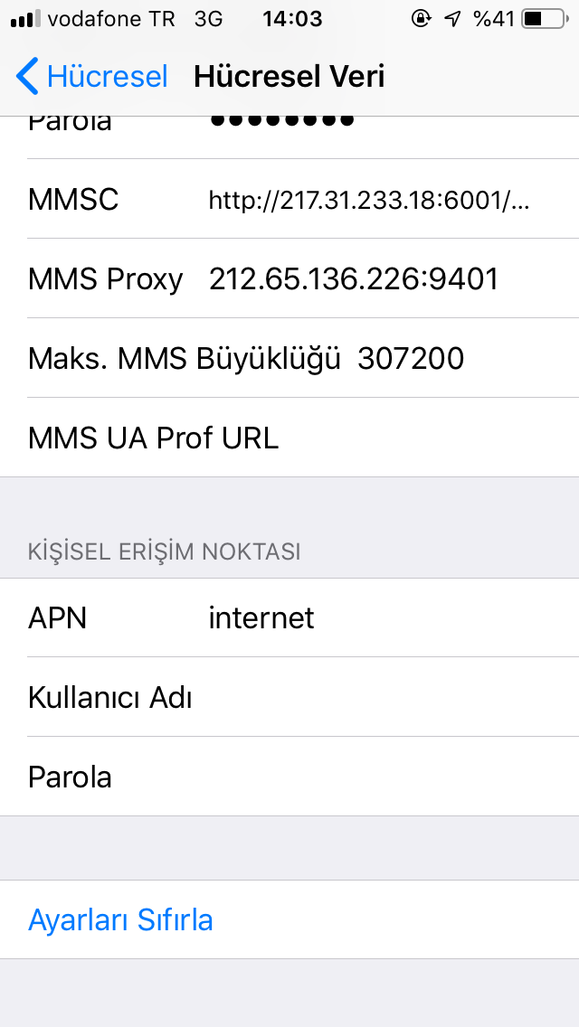 bundan bir menü yukarıda hücresel veri ağı yazan bir seçenek var. ona girip ayarları sıfırla der misin?Alıntıyı görüntüle