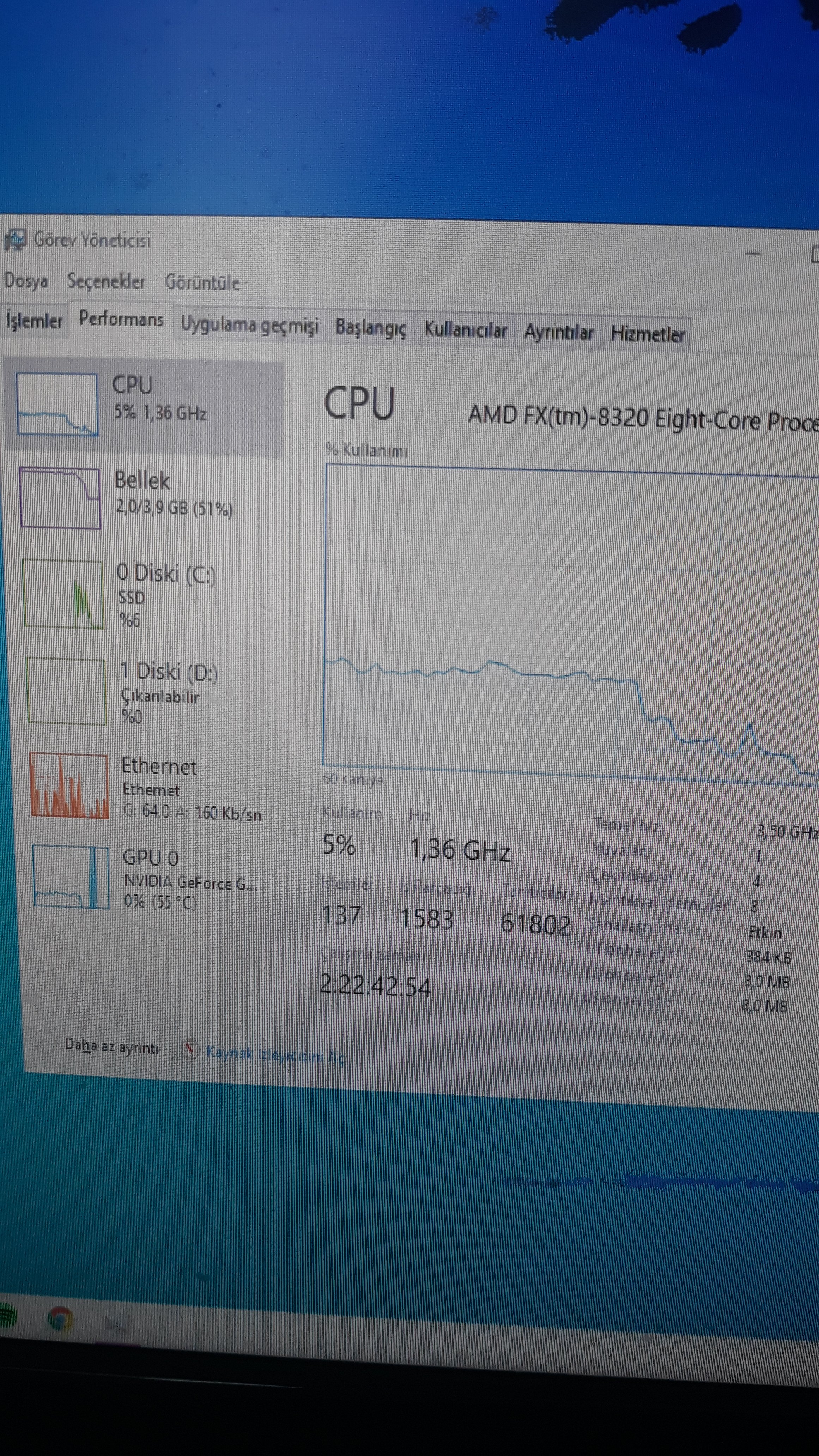 Arkadaşlar nerdeyse 2 3 ay önce böyle bir sorun yoktu pc yi kurtarma kısmından sıfırladım yine çözülmedi oyunlara girince işlemci hizim hep böyle 30 40 fps alıyorum Her zaman. Sebebi Nedir ?