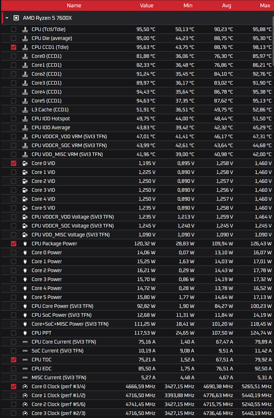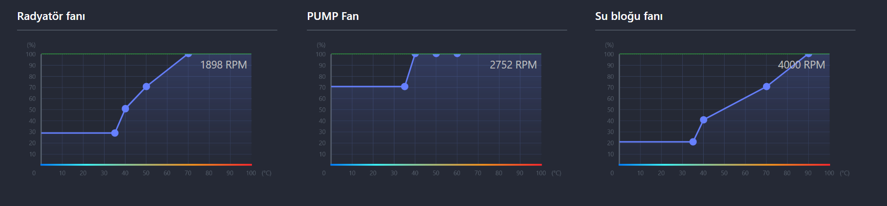 İşlemcim Ryzen 5 7600X, Sıvı Soğutmam Msi MEG S360, termal macun bakımı 1 yıl önce mx4 ile yapıldı, kasam Gamepower warcry, AAA oyunlarda 80 derecelerde dolanıyor, Sıvı Soğutmanın fanları tozlu fakat bu kadar etki eder mi sanmam, 15dklık stres testi sonuçları, fan hızları da bunlar.