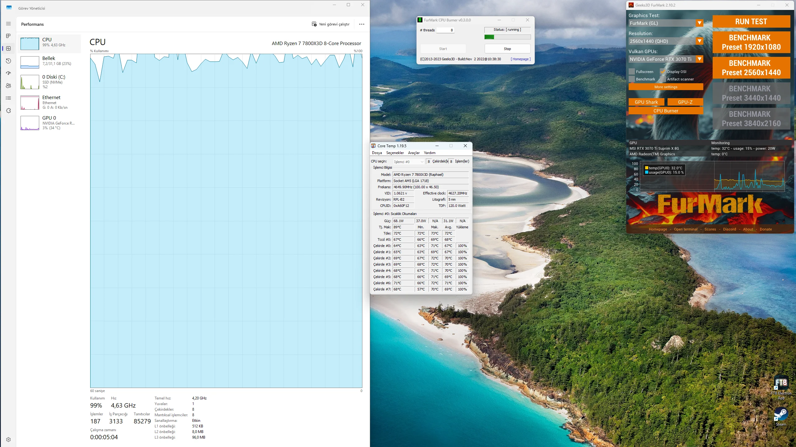 9800x3d ye göre sıcak çalışır ama çok da anormallik yok gibi.