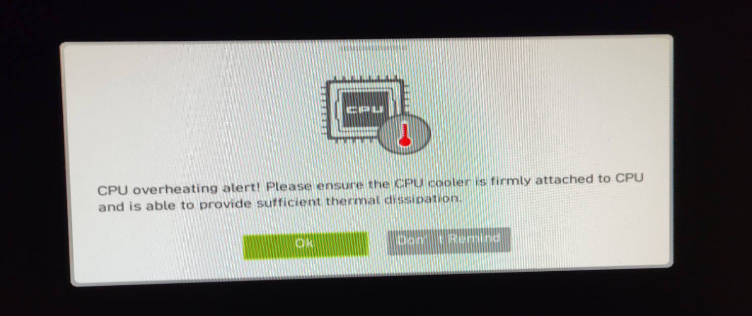 (CPU aşırı ısınma uyarısı! Lütfen CPU soğutucunun CPU'ya sıkıca takıldığından ve yeterli termal dağılım sağlayabildiğinden emin olun.)