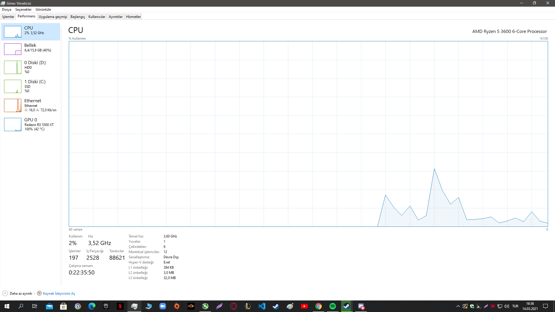 normal gayet sorun olmazHerkese selam. İşlemcim Amd Ryzen 5 3600 google,discord,steam,spotify açık iken %48 kullanıyor. Bu doğal bir şey mi?
