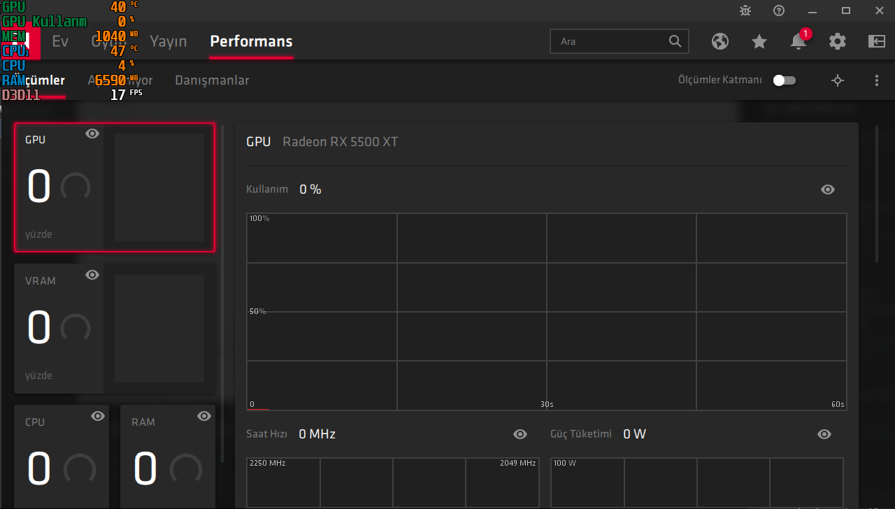görev yöneticisinde performans bölümü.Performans sekmesi nedir?
