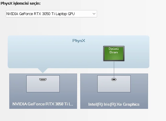 burda zaten o seçili ama böyle gözüküyorPhysx işlemcisi olarak nvidia panelinden 3050ti seçersen uygulamaların kullanmaması gerekli aslında