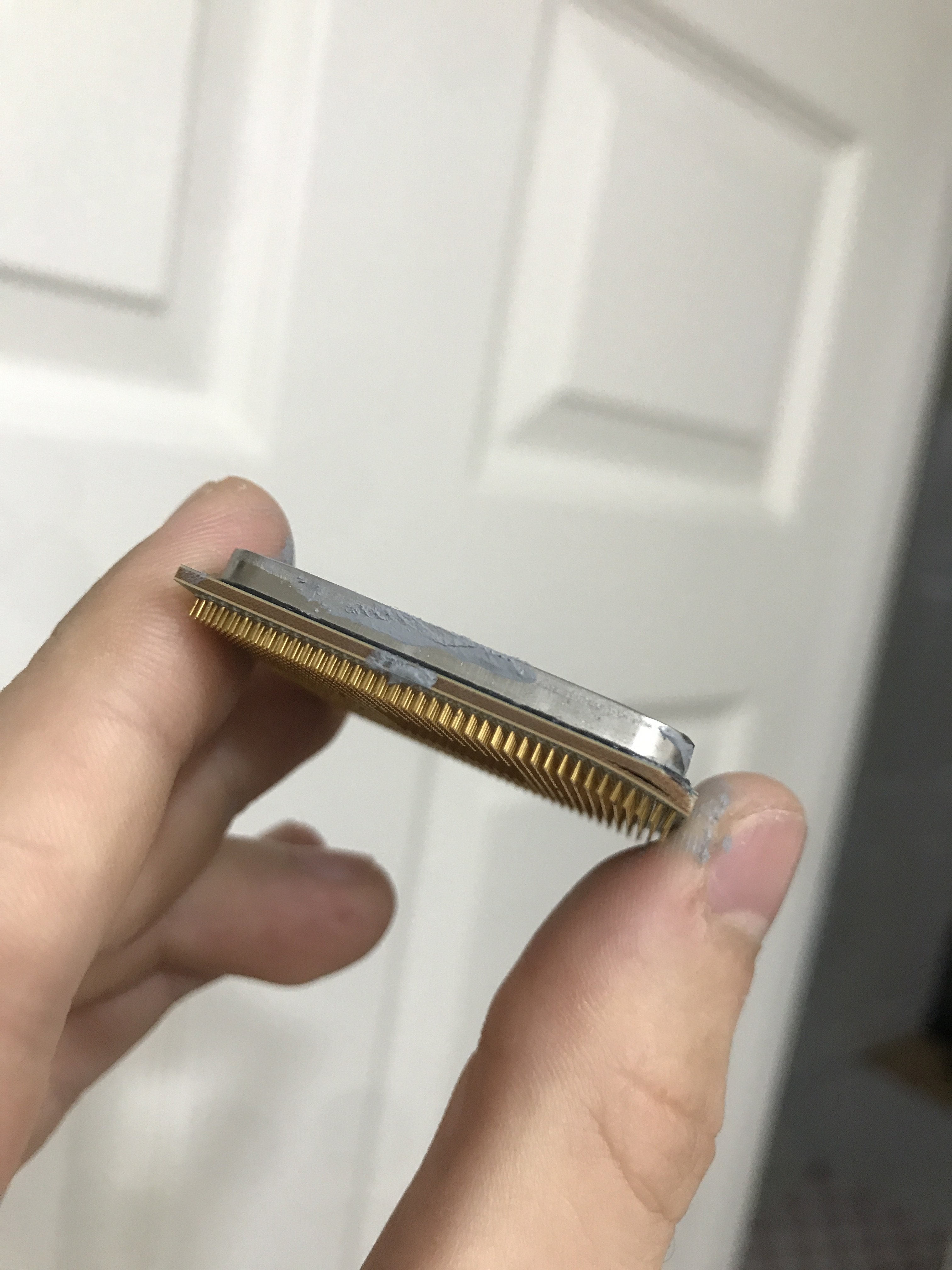 İyi forumlar değerli arkadaşlar. Az önce yeni anakartıma geçiş yaparken telefonu fark etmeden masaya işlemcinin üstüne koymuşum. Haliyle üstünde macun olan işlemci de telefona yapışmış ve telefonu kaldırınca işlemci de yere düştü.
