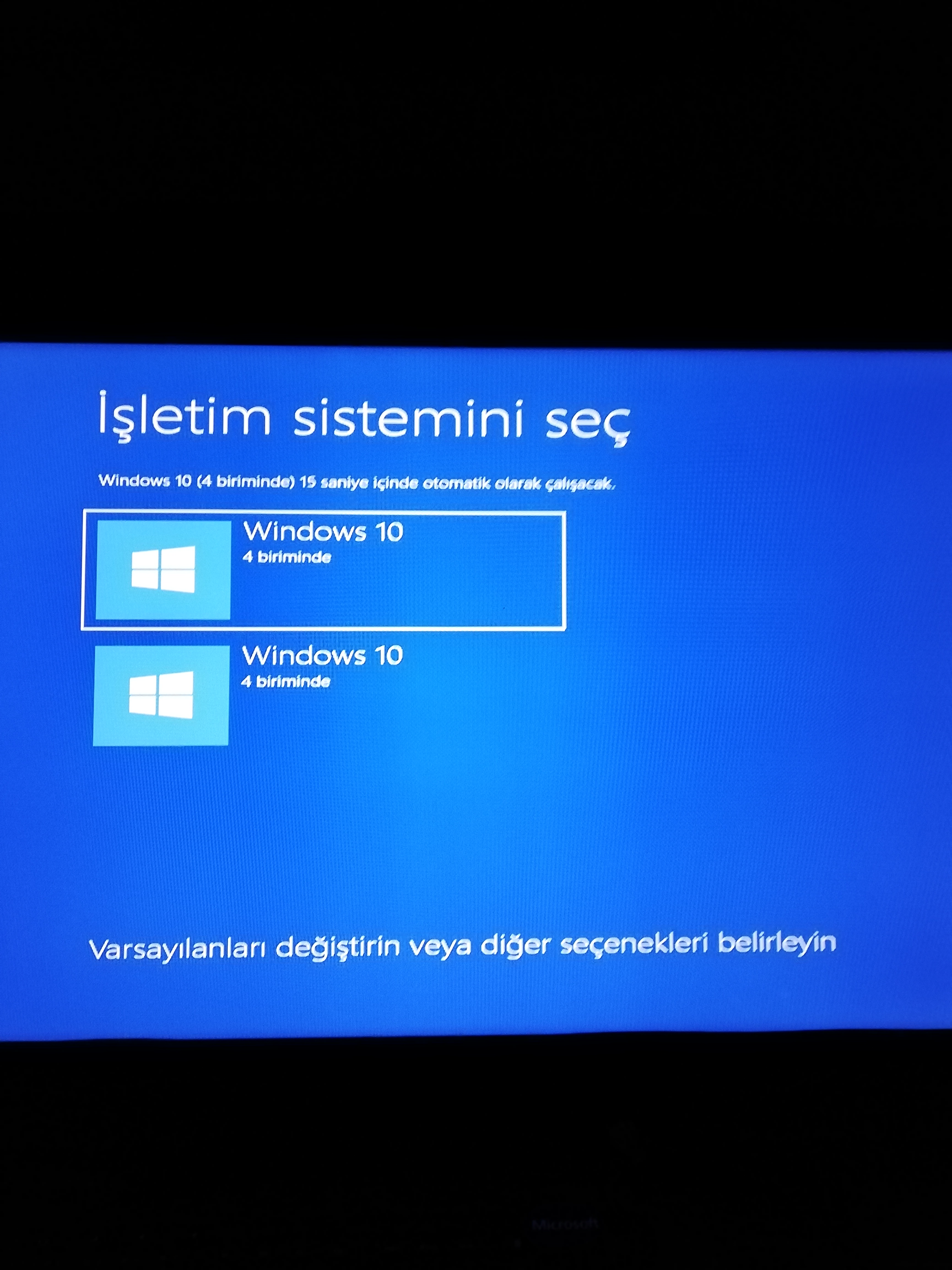 diğerini dene bu genellikle bilgisayarda 2 tane işletim sistemi olduğunda olur bende laptobun hdd sine format attığımda çıkmıştı