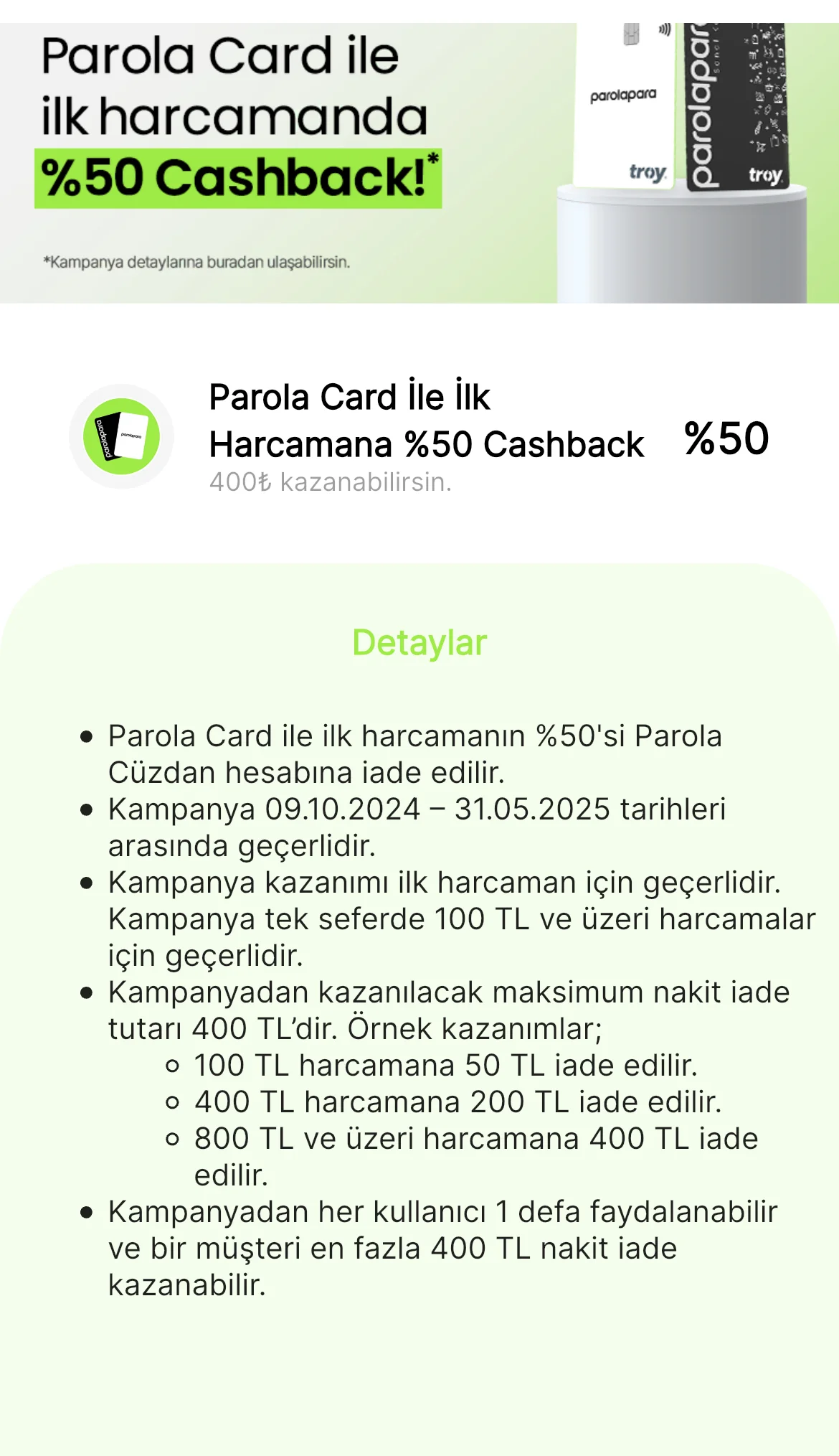 1. Parolapara hesabı açıp, yeni müşteri kampanyasına katılın. 400 TL geri ödeme gelecek.