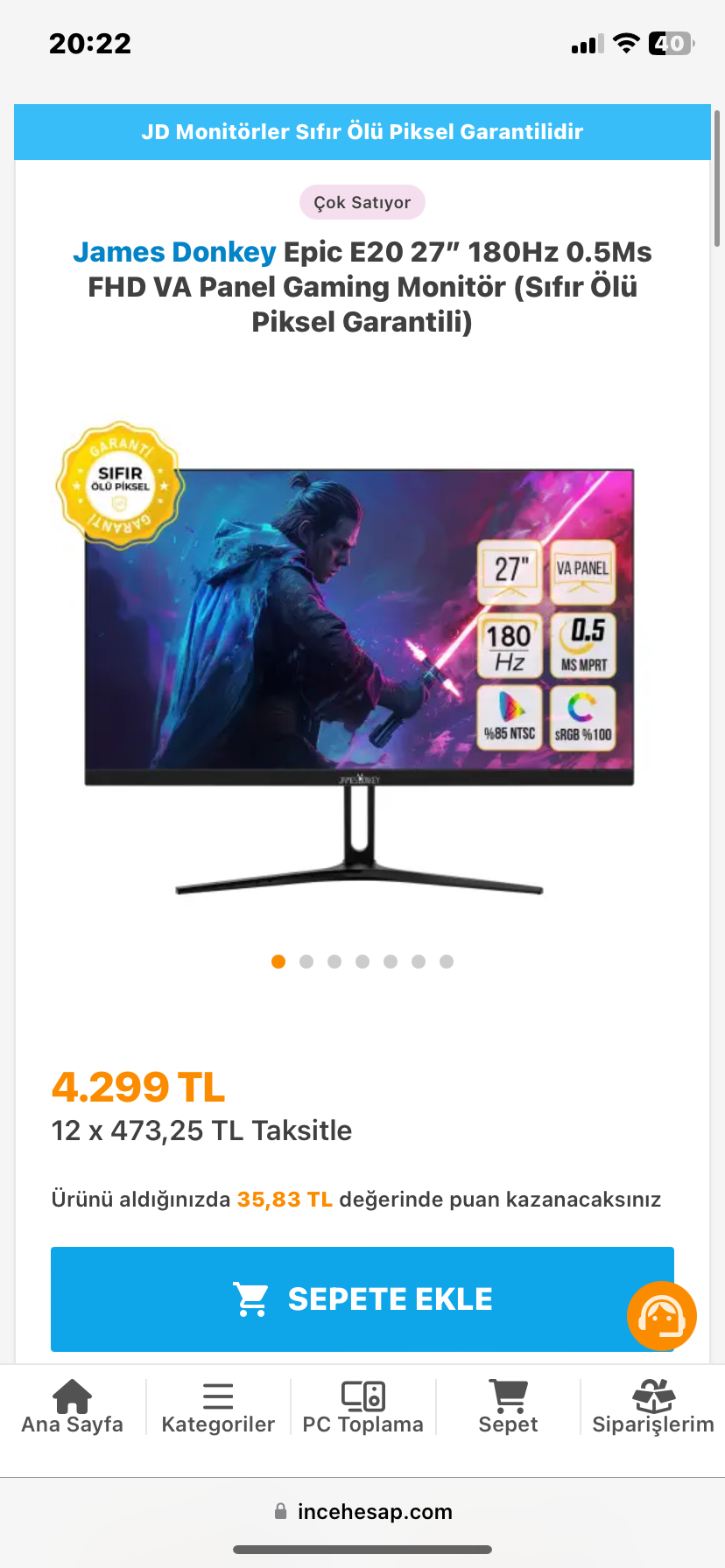 Sepette 4.299,00Hocam iyi hoş diyonda bütcem max 4.5