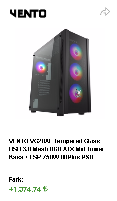 Seçenekleri at fiyat farklarıyla beraberteşekkürler önerebileceğin marka var mı hazır sistem alıyorum sonradan ekleme yaparken kısıtlı markalar var biraz baktım thermaltake ve vento var dediğin wattlarda