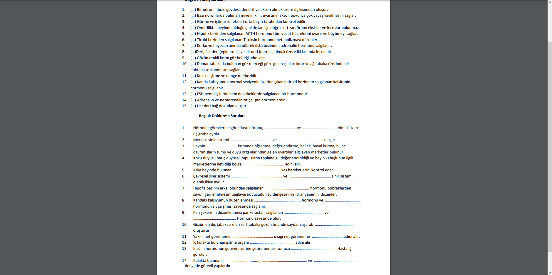 beyler biyolojisi olan varsa bunların cevabını bulabilirmi rica etsem kardeşim yapamadım diye ağlıyor yazılılarımı ne başlicakmış
