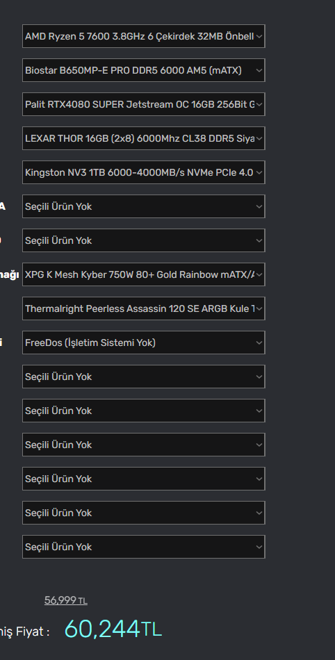 Merhaba dostlar elimde 4060ti 16gb ekran kartı var şöyle bir sistem toplamak istiyorum