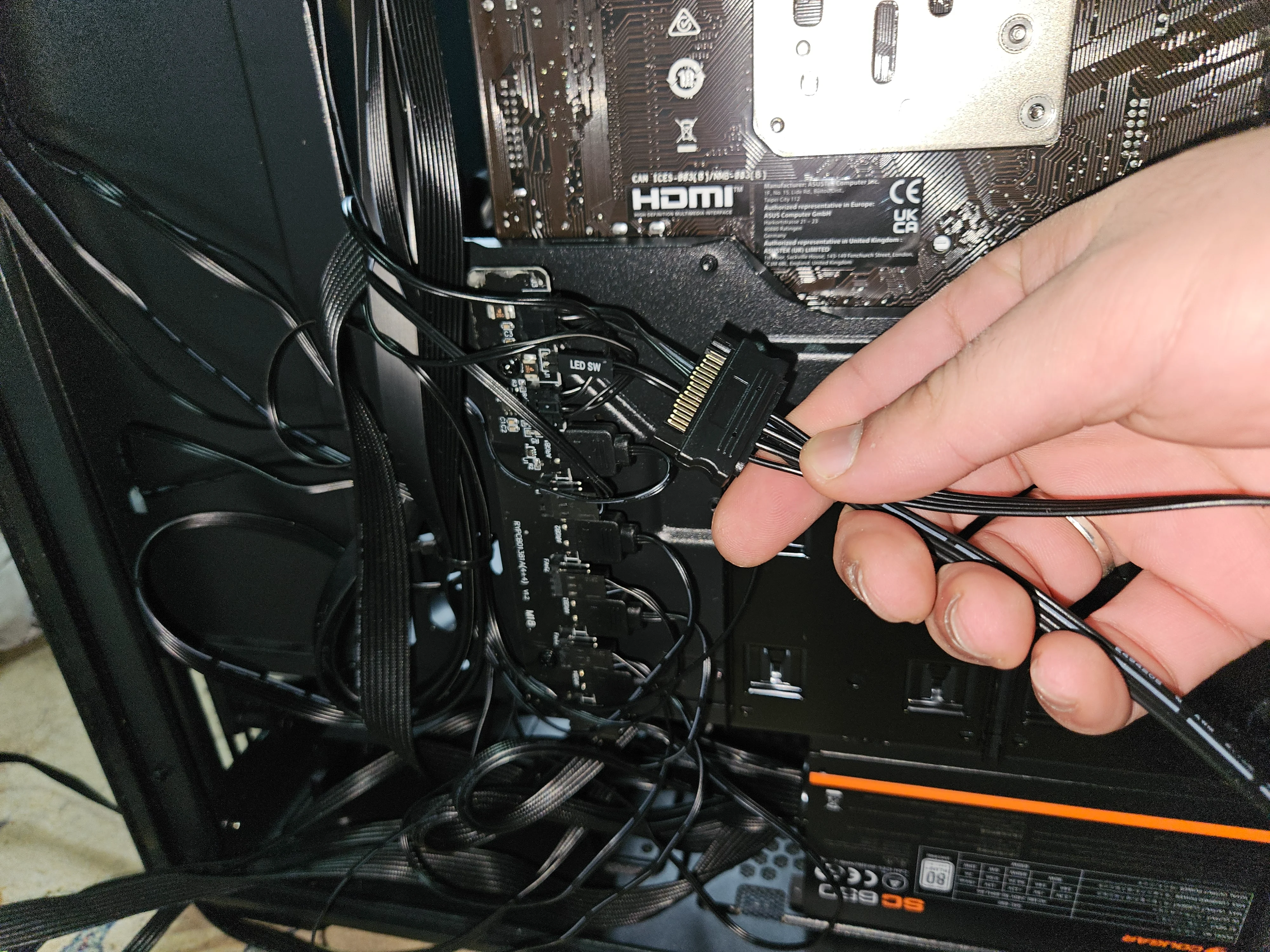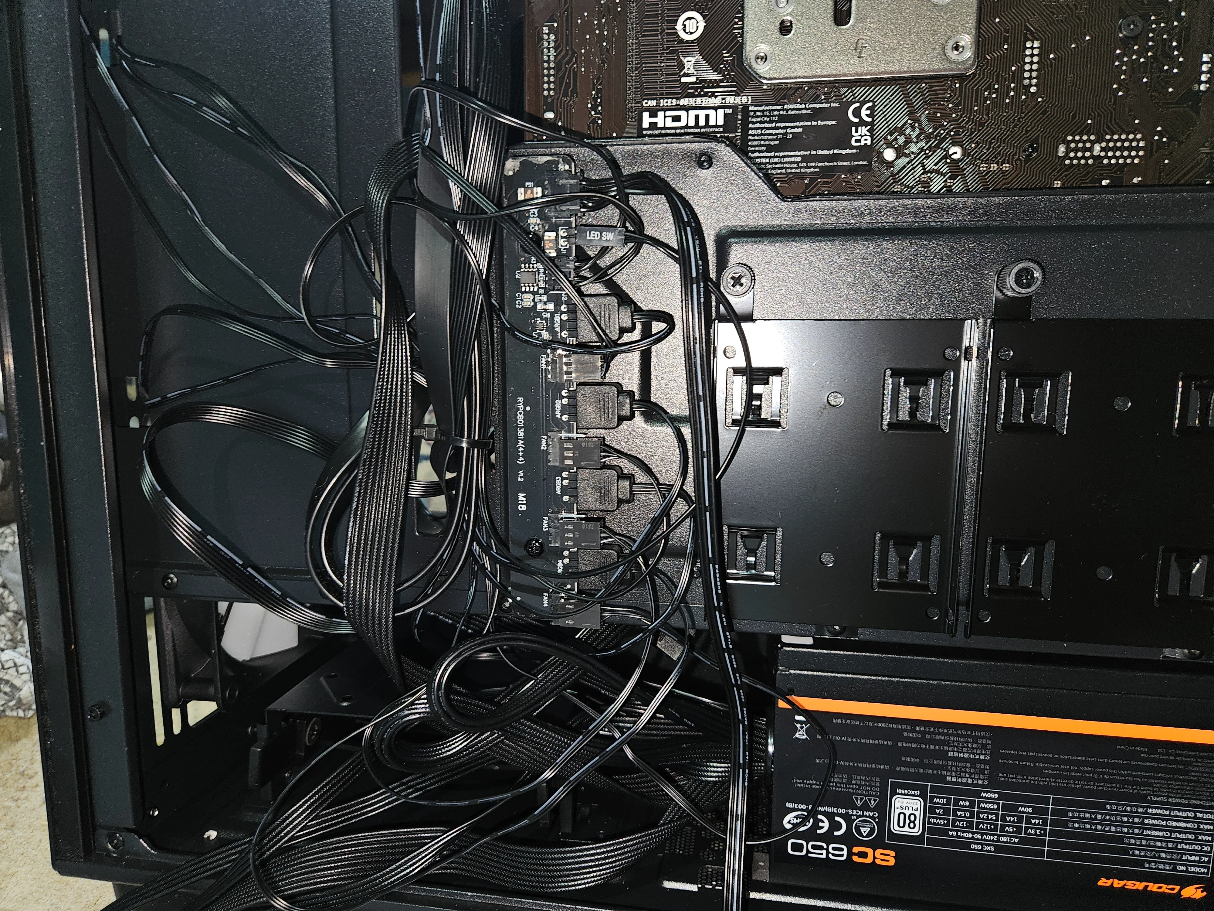 Anladığım kadarıyla bütün kasa fan ve aydınlatma pinleri kasanın arkasında tek bir yerde toplanmış. Buradan çıkan ve Açıkta kalan tek bir kablo var. Bu kablo için anakart üzerine uygun bir yuva bulamadım.