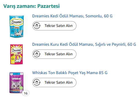 Paylaşım için teşekkür ederim Allah razı olsun 16 adet Whiskas Yaş Mama 2 adet Dreamies Ödül Maması toplam 200₺ civarı tuttu.