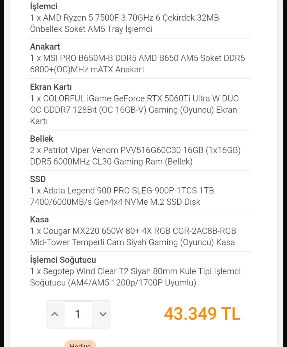 Cougar STC650 olması gerekli. Pek iyi değil.Soğutucu kötü, kasanın içindeki psu nedir bakmak lazım. İndirimle 45k civarına 5070 sistem denk gelebilir belki.