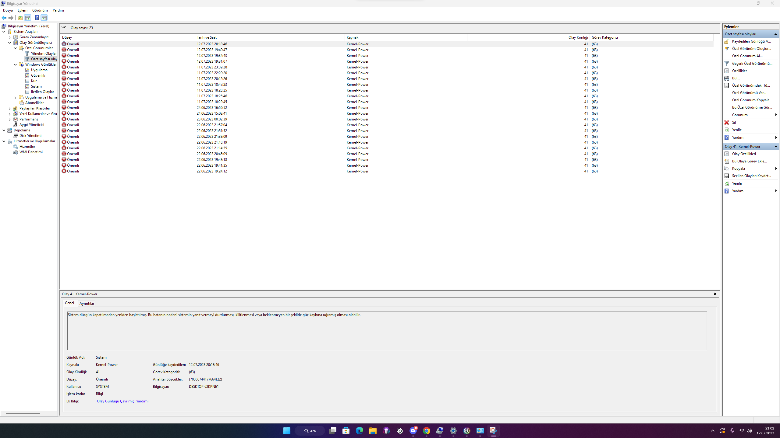 Herkese merhaba. Olaya direkt giriş yapıyorum. Bilgisayarım yeni, parçalarını ekte paylaşıyorum. Kernel Power 41 hatasını alıyorum, açılırken bir iki kere resetleyip açıyor, her seferinde olmuyor ya da PC oyun anlamında yükteyken herhangi bir problem yok ancak her seferinde olmasa da açılırken bu problemi yaşıyorum.