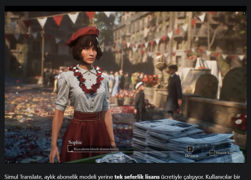 Cevirisi henuz olmayan yeni oyunlarda veya internetten ceviri indirmeye guvenemediginiz zamanlarda cok ise yarayan bir program olacagini dusunuyorum. Google translate cok kalteli degil ancak DeepL API KEY alip kullanirsaniz cok daha iyi sonuclar elde edersiniz eminim. Program adi Simul Translate internet sitesine bakabilirsiniz. IYI oyunlar herkese.