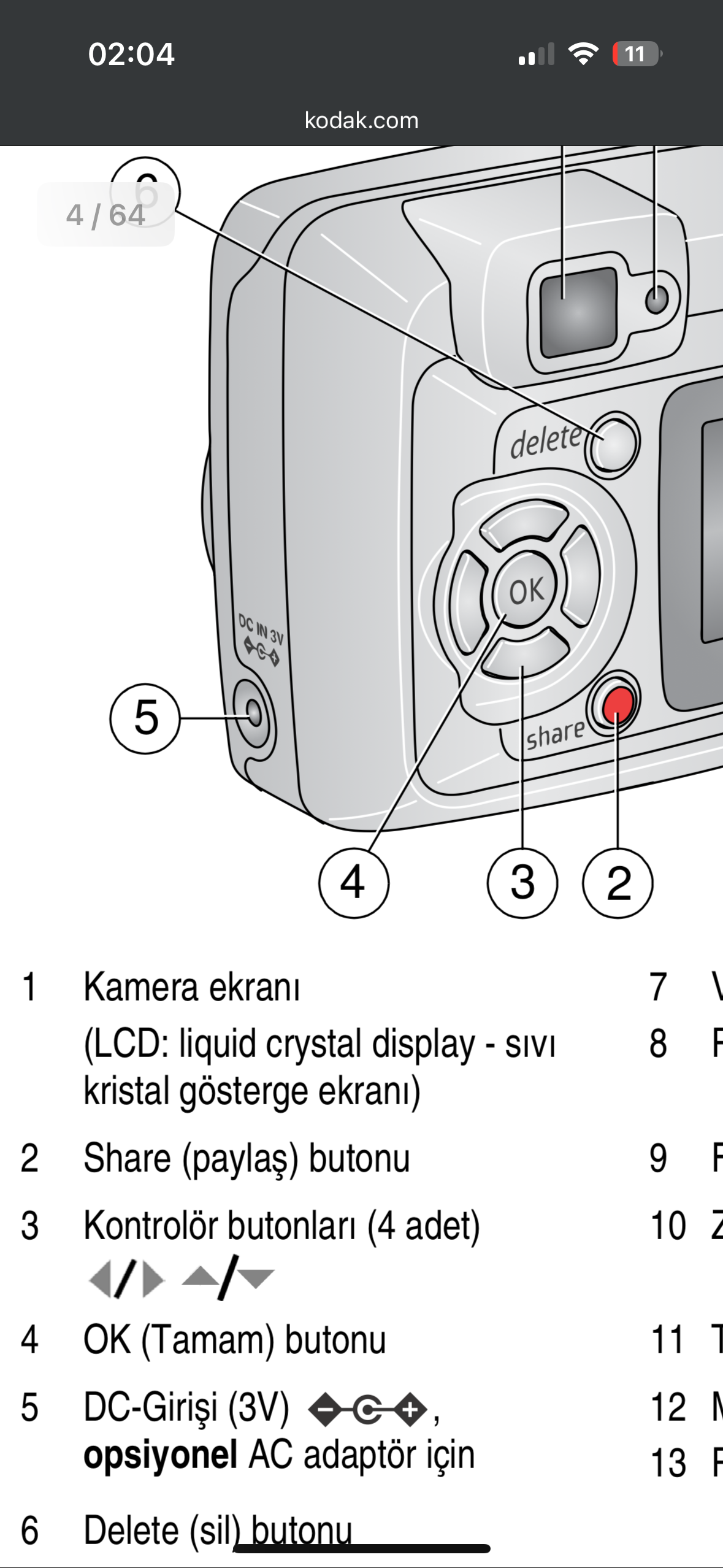 https://www.kodak.com/global/plugins/acrobat/tr/service/manuals/urg00226/CX7220_tr.pdf sayfa 5 te gözüküyo bakAliExpress'te az önce şunu buldum: 515,13TL | AC güç adaptörü için KODAK dijital kamera KWS0325 KWS-0325 EasyShare CX4230 CX4300 CX4310 CX6200 CX6230 CX6330 CX6445 CX7220