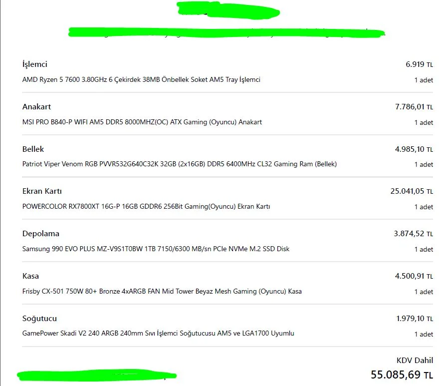 Sistemde neresi 55 tutmus anlamadim kasa cop,anakart cop,ssd luzumsuz pahali 40-43 ederi olan kasa ne fiyata gelmis