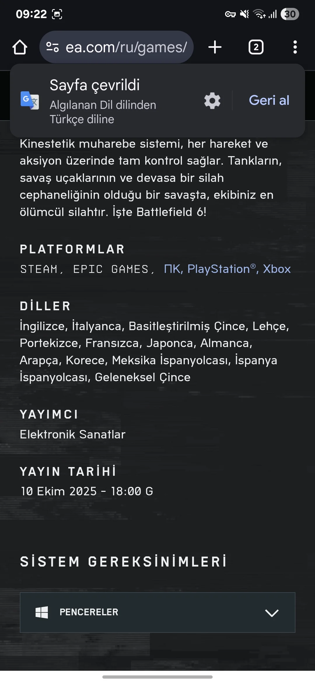 bu gördüğün fotoğraf bf1 desteklenen diller sayfas