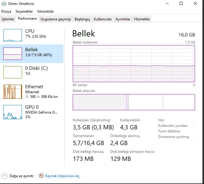 örev yöneticisinden bakınca bunu gösteriyor mu mesela 16gb ram takılı olduğu h