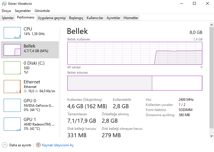 Aşağıya laptopumda ki RAM'i atıyorum.