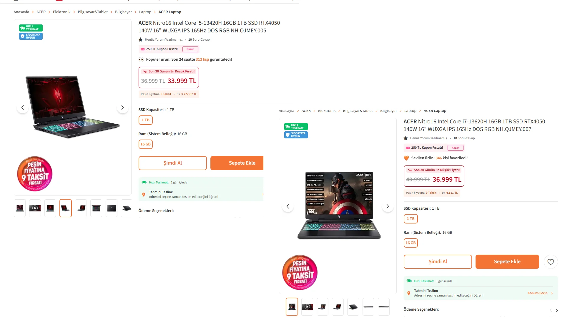 Dostlar İyi Geceler Trendyolda önüme 2 tane laptop denk geldi i7li : https://www.trendyol.com/acer/nitro...-p-942667461?boutiqueId=681310&merchantId=968 i5li : https://www.trendyol.com/acer/nitro...-p-942667460?boutiqueId=681310&merchantId=968 bu laptopu alan ya da kullanan var mı 250 TL İnidirm kuponu var , vadesiz 9 taksitte oluyor , sizce alınır mı ?
