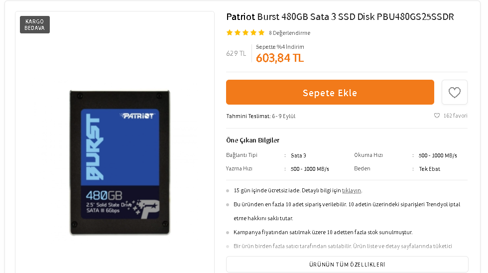 SSD olarak Apacer-Patriot-Gigabyte alabilirsiniz. Patriot gayet kalitelidir. SanDisk olarak ULTRA modelini alın. Üstünde PLUS yazan modelleri sorunlu oluyor. Ama üçü arasından en iyisi SanDİsk. Gigabyte hızları biraz düşük.